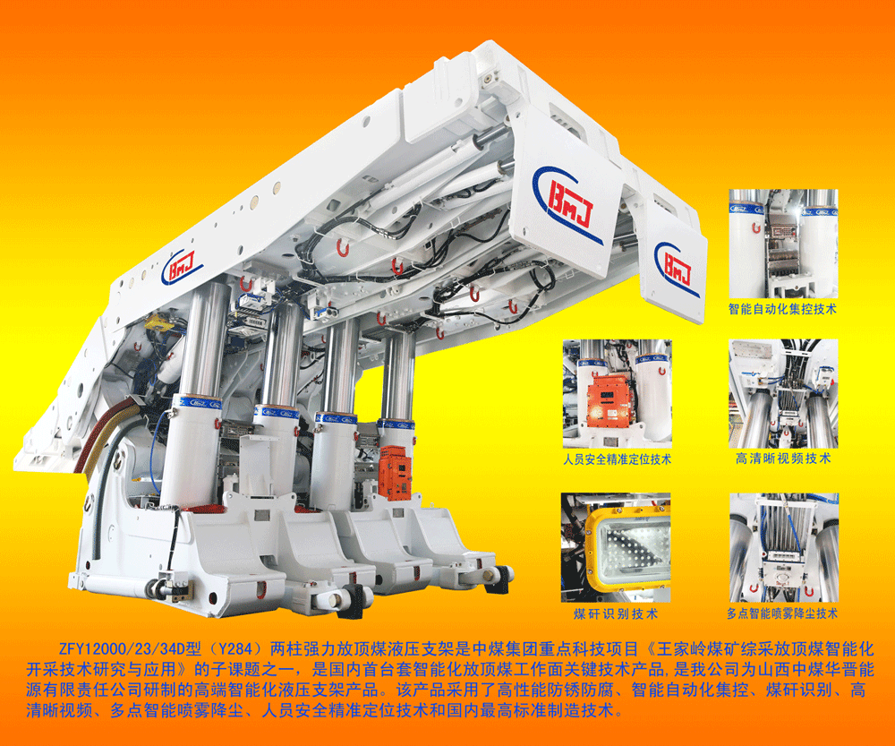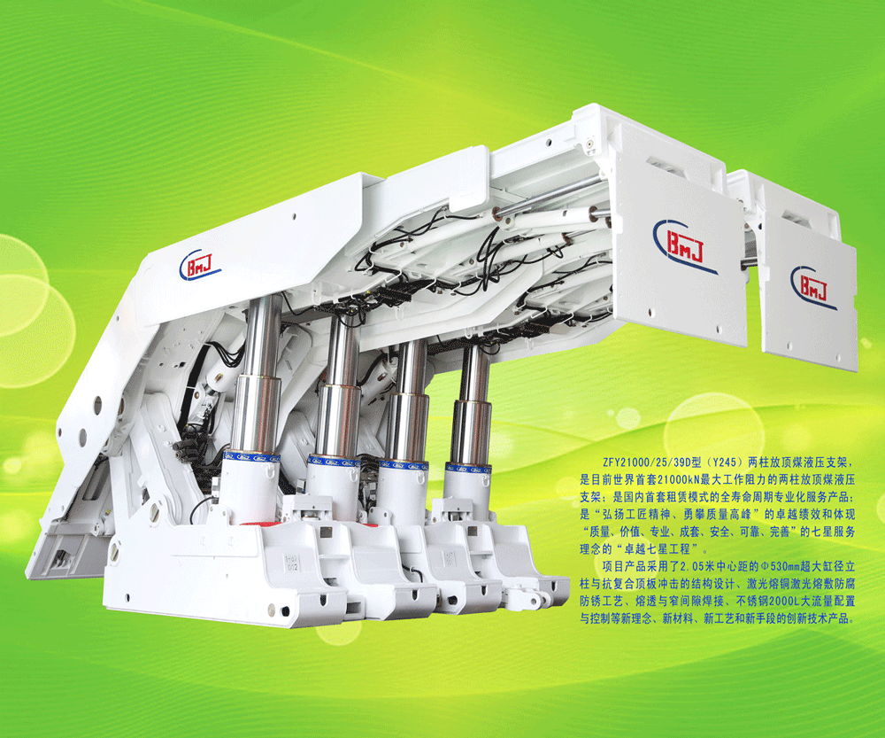 北煤机公司1970年研制了我国第一台BZZB型垛式支架,1972年实现国内首台套液压支架用于阳泉矿务局。经过数十年艰苦创业与自主创新,已成为集研发、制造、销售、服务为一体的井工煤矿综采液压支架以及智能控制技术产品的专业供应商和服务商。能够设计制造高度从0.55米到10米,工作阻力从1800KN到29000KN,中心距从1.25米到2.4米等多种规格1000余种架型,近年来高端产品占比保持80%以上。产品市场覆盖全国各大煤炭基地100多个重点煤矿,部分产品出口俄罗斯、美国、澳大利亚、白俄罗斯、印度、哈萨克斯坦、孟加拉、越南等产煤国家,为中国煤机装备实现国产化、中国煤炭工业由手工开采、半机械化开采到综采机械化开采和“安全、绿色、智能、高效”开采做出了重大贡献。