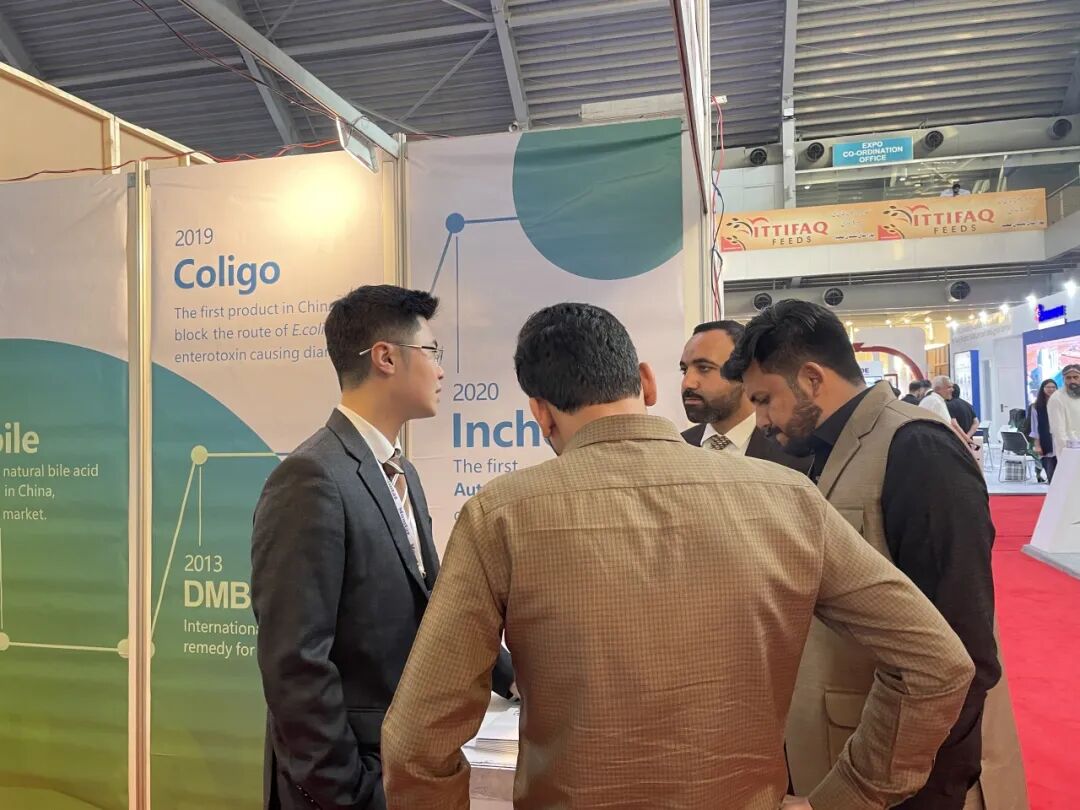 交流中,详尽的开发过程、机理描述,明确的实验数据、使用案例等,都为客商们进行了讲解。结合巴基斯坦当地的养殖环境和成本,思来生物海外事业部经理与产品经理为客户提供了一对一的添加使用方案。有本地客商在洽谈后希望思来生物寄送样品进行试验。也有本地客商表示:希望到我司国内工厂参观