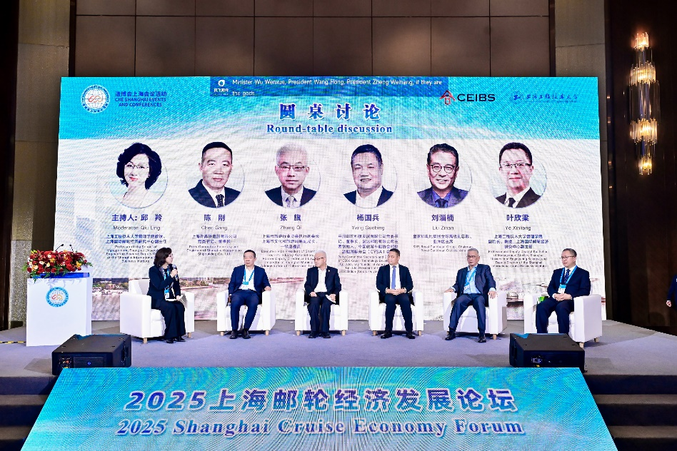 圆桌讨论环节,在邱羚教授主持下,张旗,中船邮轮科技发展有限公司党委书记、董事长、爱达邮轮有限公司主要创始人、中国旅游车船协会邮轮游船游艇分会会长杨国兵,上海外高桥造船有限公司党委书记、董事长陈刚,皇家加勒比集团全球高级副总裁、亚洲区主席刘淄楠,叶欣梁等几位来自政、产、学、研界的嘉宾代表共同展开对话交流,围绕当前邮轮产业最关注的议题如政策创新如何从“上海样本”走向“全国共享”,国产邮轮“批量建造”的效能革命何时到来,“邮轮生态圈”如何突破“链式协同”不足的瓶颈,国际邮轮巨头如何应对中资邮轮崛起的新格局,人才培养如何匹配产业“跃升期”的新需求等,五位嘉宾分别给出了精准回应。