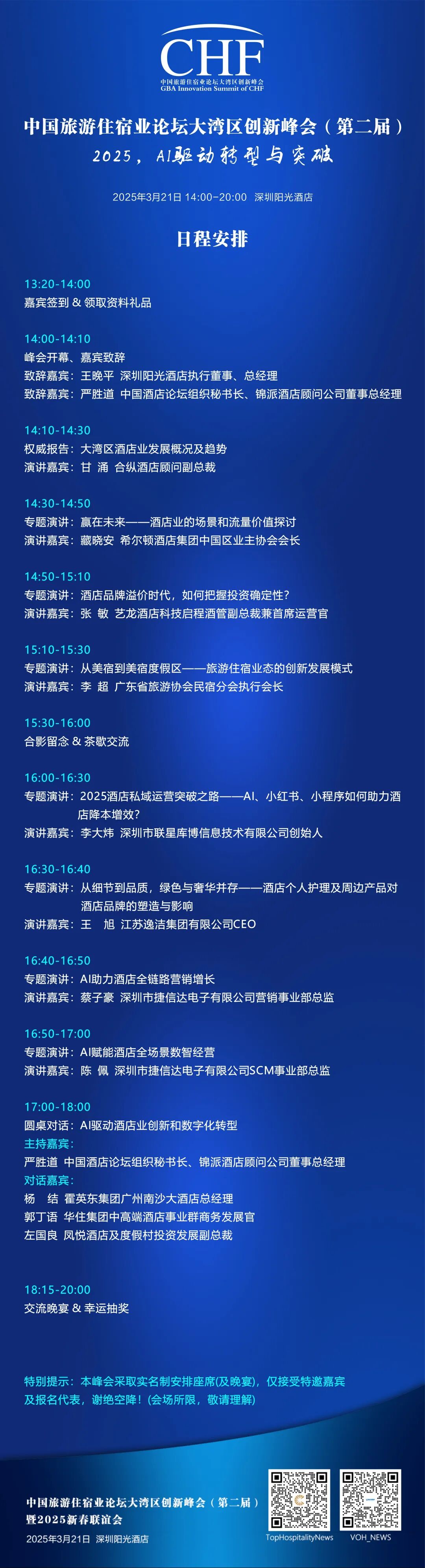 由中国酒店论坛组织、酒店之声传媒主办,广州锦派酒店管理咨询有限公司、深圳市捷信达电子有限公司承办,深圳阳光酒店、金英会商学院参与协办的中国旅游住宿业论坛大湾区创新峰会(第二届)暨2025新春联谊会于2025年3月21日在深圳阳光酒店举行。