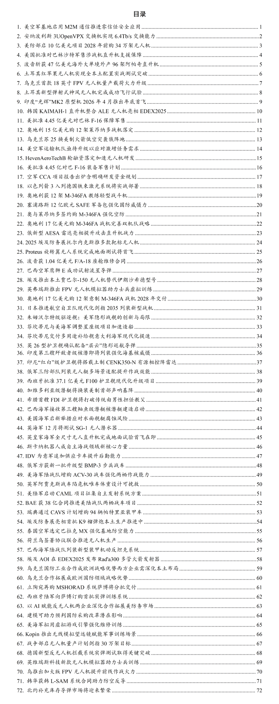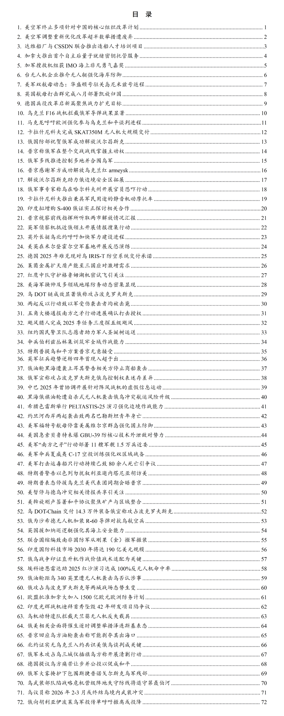《全球防务动态》系列专刊国内独家每日发布涵盖航天领域、武器装备、军事热点、人工智能、先进制造等领域的全球动态信息。提供航天动态专报装备动态专报军事动态专报智造动态专报以及航天防务新闻日报等特色产品模块工作日每日推送,形成结构化、可编辑的文档,供订阅用户在小程序智研烽火信息商城下载。每日及时的动态信息能够有支持各单位进行报送、军情研究与安全形势分析的需求。