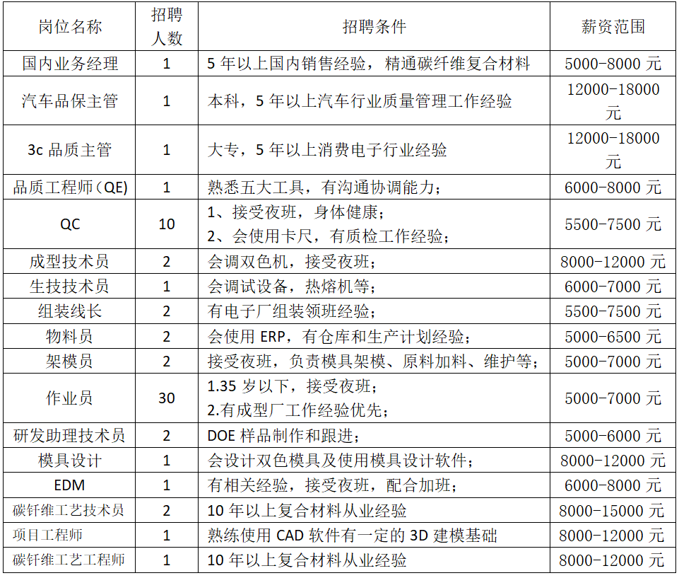 现扩招以下岗位(生产类岗位:恒温车间、操作员主要操作机台,不是流水线)