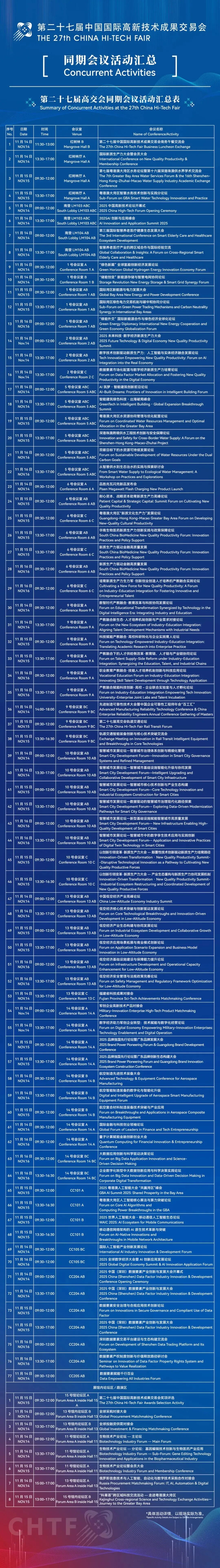 本届高交会同期将举办200余场配套活动,聚焦人工智能与数字经济、新能源与绿色经济、空天产业与低空经济、先进制造与轨道交通、生物医药与健康、水利与生态科技、金融与创新创业等战略赛道,涵盖新品发布会、项目路演、技术讲座、大型峰会、商务午餐交流会、奖项评选等,丰富多样的活动为参展企业和观众提供了广泛的交流与合作机会。