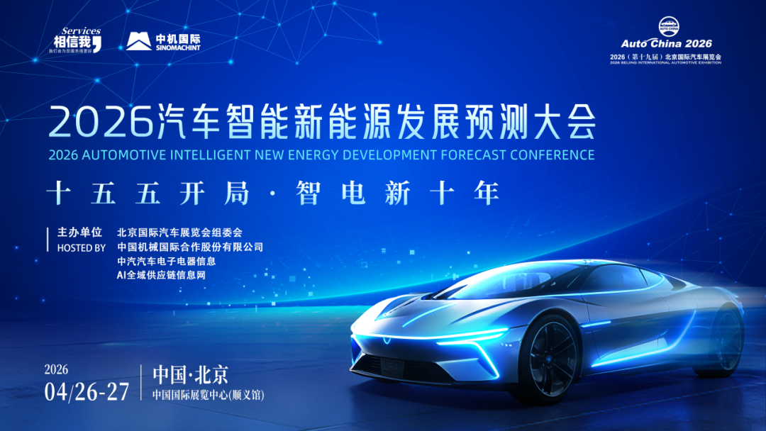 值第十九届北京国际汽车展览会同期,“2026汽车智能新能源发展预测大会”将于4月26日在北京·中国国际展览中心(顺义馆)举办。