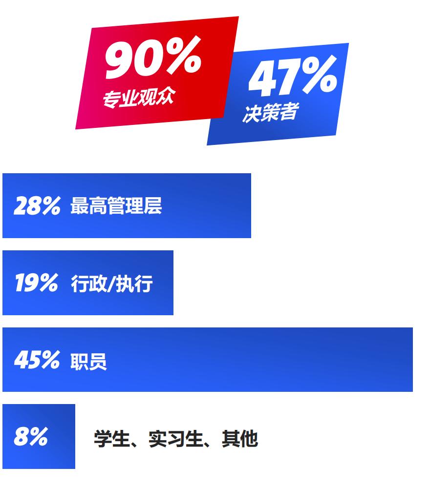 这里没有闲逛的观众,47%为决策者,28%为最高管理层,他们来自德国及欧洲工业腹地,是“隐形冠军”和工业巨头中具有采购决策权的核心圈层。