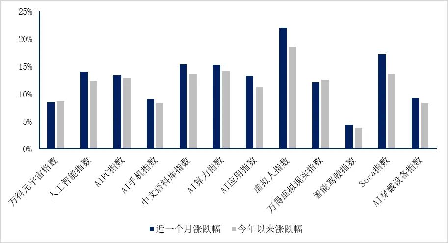 2026年1月,AI板块大幅上涨,近一个月指数涨幅达14.11%。由于市场向好,以及智谱AI上市大涨等事件刺激,A股人工智能板块表现较好。同时,由于监管压盘,虽然AI板块近日有所调整,但临近业绩披露期,AI板块业绩确定性强,尤其光模块、PCB等细分领域,有望得到资金青睐,板块有望维持强势。