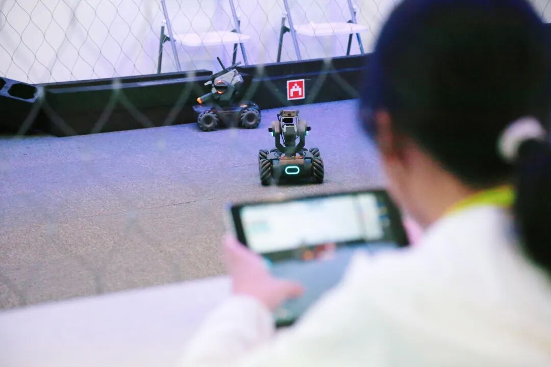 在深圳大疆创新体验中心,学生们直面全球顶尖无人机技术。50余款机型陈列眼前,从编队表演控制原理到防碰撞轨迹规划算法,工程师现场解密人工智能的底层逻辑。最燃时刻当属“机甲大师编程对抗赛”——同学们亲手操控机甲机器人,在战术协作中体验工程师的创造力与掌控感,一颗颗“科技强国”的种子悄然萌发。