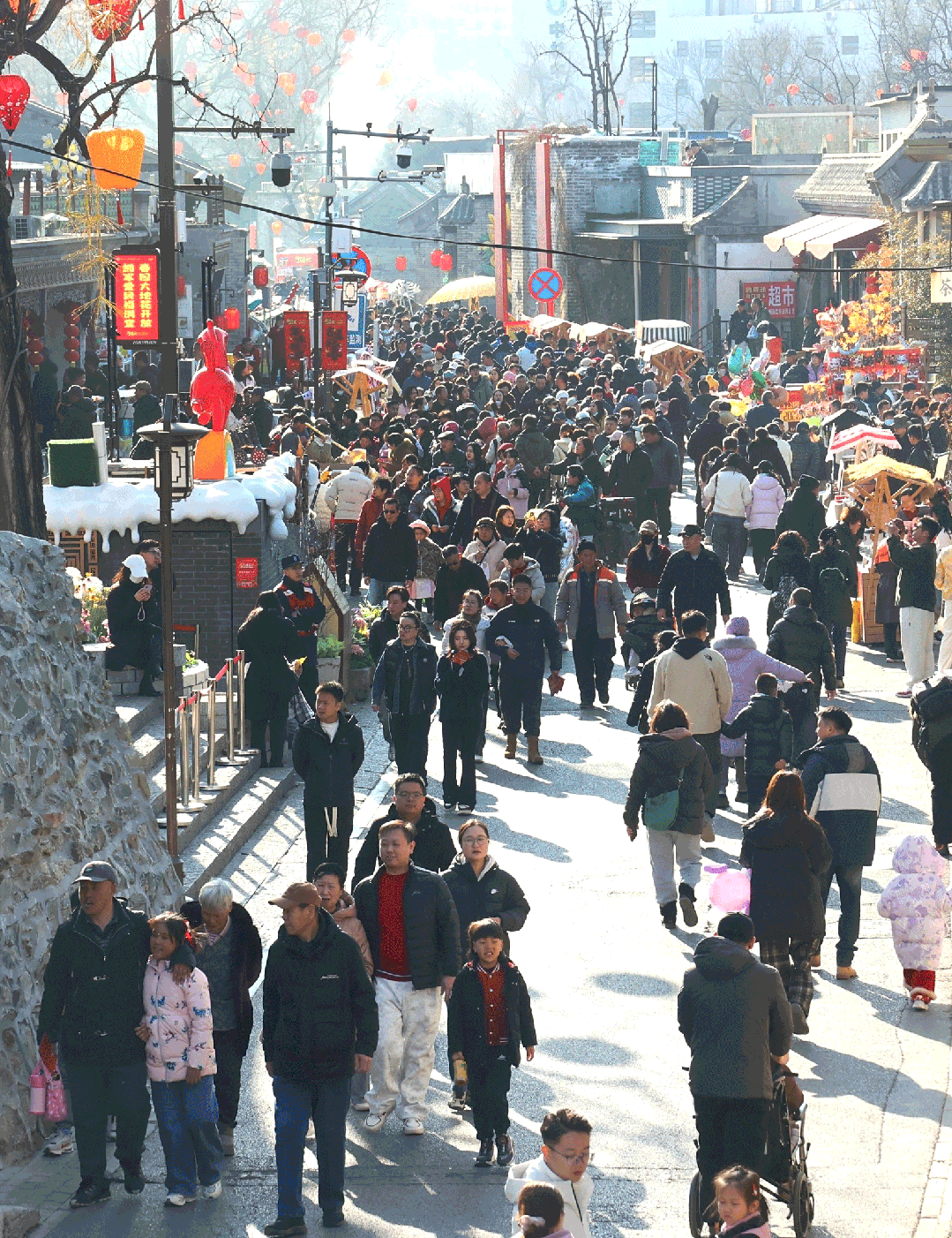 本届新春嘉年华人气爆棚、成效显著,客流与营收双双创下历史新高,成为马年春节京西最具吸引力的文旅打卡地。春节假期期间,街区总客流量达53.38万人次,同比去年提升69.77%,其中大年初一至初四单日客流量均突破8万人次,刷新了模式口历史文化街区开街以来的单日接待游客最高纪录。营收方面同样表现亮眼,总销售额约1082.7万元,同比去年提升73.01%,彰显了文旅消费的强劲活力。