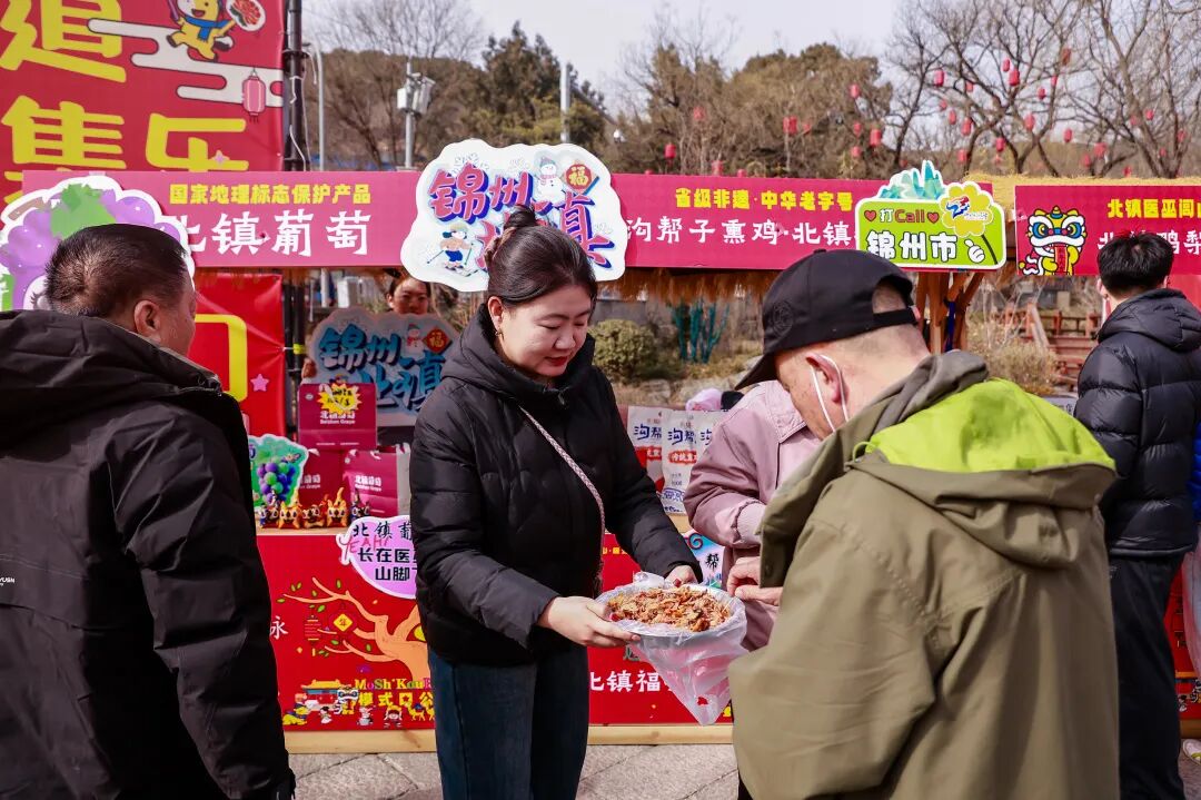 在法海寺壁画艺术馆内展出的北镇医巫闾山·镇山文化展,系统呈现镇山文化底蕴,多民族融合印记与北镇非遗技艺,游客近距离品读千年镇山礼制与历史文脉。“北镇福礼展”上特色市集与民俗表演同步亮相,沟帮子熏鸡、北镇葡萄等风味美食香气四溢,布老虎、满族剪纸等非遗手作精巧吸睛,原汁原味的辽西民俗轮番上演,热情的表演点燃街区氛围,让市民游客近距离了解外地地域文化与民俗风情,丰富活动内容,促进不同地域间的文化交流与互鉴。
