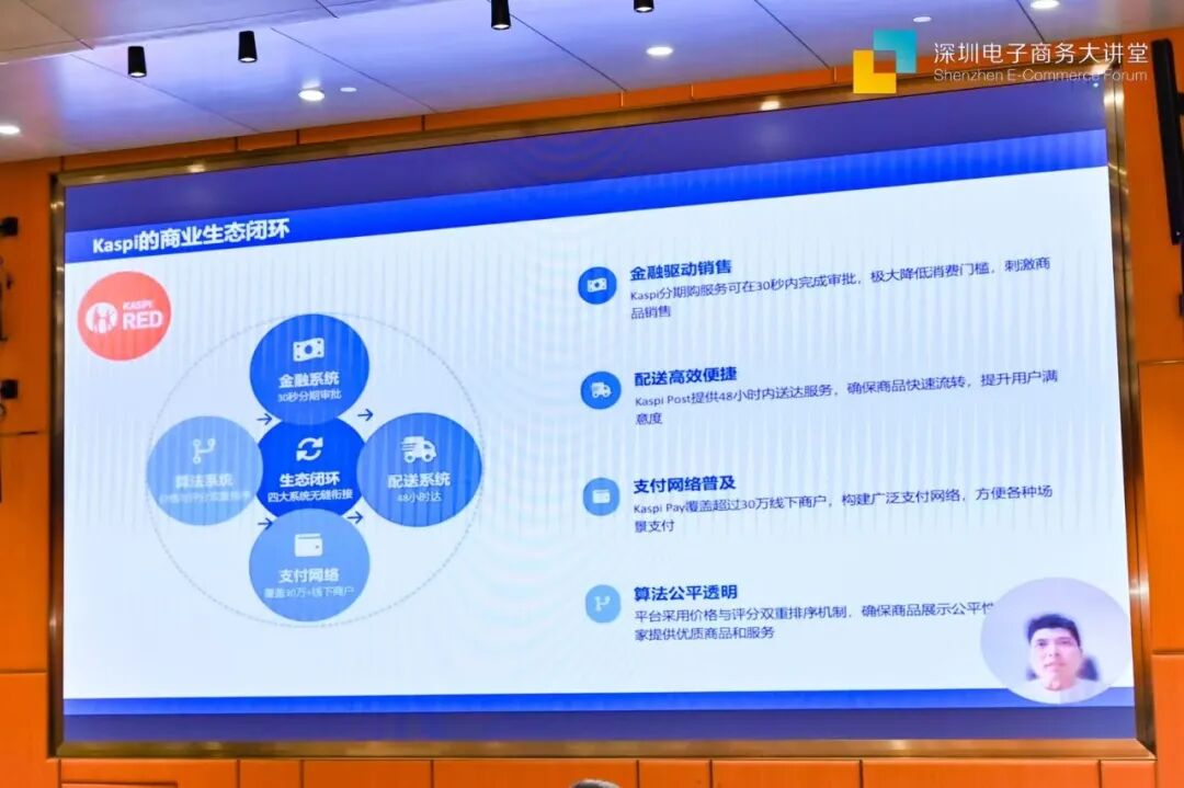 陈总重点介绍了当地国民级超级应用 Kaspi ,该平台整合购物、支付、分期理财、线下收单等多元功能,拥有 1500 万 + 活跃用户和 95% 的移动端渗透率,通过 48 小时送达的高效物流、30 秒分期审批的金融服务及覆盖 30 万 + 线下商户的支付网络。中国企业入驻需准备哈国税号、本地银行账户等材料,审核周期 2-4 周。