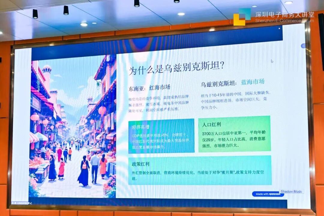 乌兹别克斯坦本土电商大卖王恩斌深入分析了当地的市场潜力和电商机遇。乌兹别克斯坦GDP连续多年保持5%-6%以上的高速增长,3700 万人口平均年龄仅 29 岁,政策环境友好,新能源汽车、光伏储能、快消、数码、母婴等品类存在巨大市场空间,消费品价格普遍为中国市场的 2-3 倍,利润空间显著。