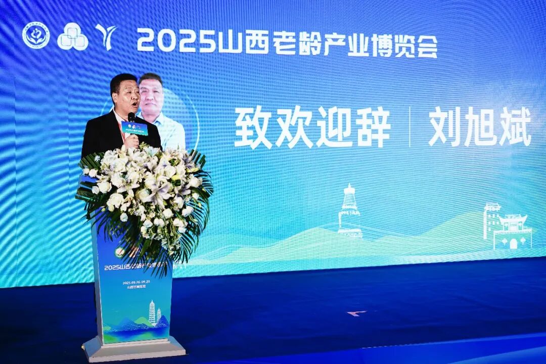 开幕式上,山西省老龄产业协会会长刘旭斌发表热情洋溢的欢迎致辞。他首先向远道而来的全国养老领域领导及专家、企业家及参展代表致以诚挚问候,并结合山西老龄事业发展现状指出:“截至 2024 年底,山西省 60 岁及以上常住人口占比已达 19.8%,老龄化进程持续加快,既带来挑战,更催生广阔的产业机遇。本次博览会搭建起‘政、产、学、研、用’协同交流的桥梁,期待各位专家分享前沿理念,与山西同行共商养老服务创新、共推老龄产业升级,让更多优质康养资源惠及三晋老年群体。”