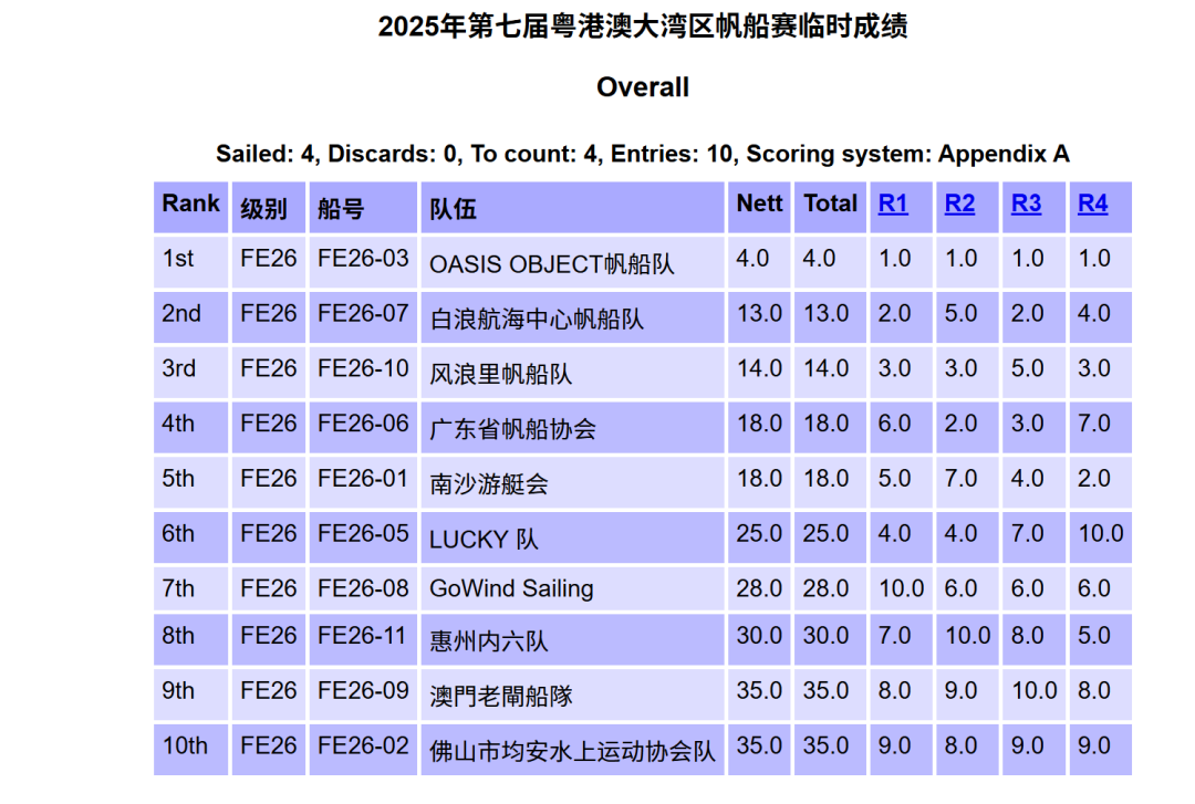 12月12日,2025年第七届粤港澳大湾区帆船赛在广州南沙游艇会正式拉开帷幕。参加本届赛事的20支代表队在6节东南风中展开首日角逐,最终来自厦门的帆人队以四轮总积分7分的绝对优势暂列J70组别第一,来自广州的OASIS OBJECT帆船队暂列FE26组别首位。本届赛事由南沙帆船协会承办,汇聚了在亚运会、全运会上斩获佳绩的冠军选手,以及实力强劲的职业帆船选手,已成为该赛事历届中竞技水平最高的一届。赛事依托南沙得天独厚的滨海水域与南沙游艇会完备的航海设施,为选手提供了优质的竞赛平台。不仅配备了经验丰富的专业裁判团队,确保执裁公正严谨,更通过周密的赛事组织与细致的服务安排,展现了南沙作为粤港澳大湾区航海运动枢纽的承办实力与好客精神。上午9时,开幕式在南沙游艇会码头举行。粤港澳三地代表、政府领导及嘉宾出席了比赛开幕式。广东省帆船协会副会长、南沙区帆船协会会长在致辞中表示,本届赛事由专业团队倾力打造,在加强三地联系、体育交流与青年互动中具有重要作用;他呼吁全体运动员弘扬“同舟共济、奋勇争先”的精神,希望裁判员恪尽职守、公正执裁,同时感谢所有工作人员和志愿者为赛事安全顺利举办提供坚实保障。随后,20支帆船组成巡游方阵,从南沙游艇会扬帆启航,列队驶向南沙邮轮母港。这一充满力量与激情的启航,宣告比赛即将正式打响!上午11时,首轮竞赛正式打响。今日南沙水域风力条件较为理想,但风速存在一定波动,对各赛队的航线选择、战术执行及临场应变构成了严峻考验。竞赛一直持续至下午15时,共完成了四轮场地赛。第一轮竞赛中,J70组别的青岛船歌队在绕标后选择外侧航线,名次大幅下滑;传成航海队凭借稳定发挥和良好配合保持竞争力;其他一些队伍在升、降球帆的关键操作中出现配合失误,瞬间影响了排名。最终,首轮比赛在J70与FE26组别船只交织绕标、紧张刺激的氛围中结束。第二轮竞赛中,风速约8.3节,风向在100至170度之间大幅摆动,形成复杂风区。起航时,部分船只因抢航被罚。左侧场地风力较强但风险高,右侧风力较小但稳定;多数队伍倾向左侧启航以获取风区优势,也有队伍如老男孩梦之队选择右侧起航作为差异化策略。J70组别中,传成航海队和青岛船歌队在第二轮竞赛展现出强劲实力;而FE26组别中,OASIS OBJECT帆船队、白浪航海中心帆船队、风浪里帆船队、Lucky队位列前四,竞争激烈。第三轮竞赛中,风速约5-6节,多支队伍选择左侧行驶获得速度优势,J70组别的帆人队、香港队等队伍在本轮比赛中领先。老男孩梦之队同样以稳定发挥脱颖而出。场地风区变化显著,各队均展现高超的战术技巧。第四轮竞赛中,顺风段平均船速在4节左右。起航时,左侧风区依旧是多数船队的选择。FE26组别中,风浪里帆船队用遮挡策略压制对手;OASIS OBJECT帆船队表现强势,遥遥领先,展现出极强的控船和战斗能力;白浪航海中心队则因调整不当影响进程。FE26组别首日冠军专访 | OASIS OBJECT帆船队:默契传承,扬帆共成长首日的激烈角逐中,OASIS OBJECT帆船队凭借出色发挥,暂列FE26组别第一。队员们在指令传达、动作衔接、力量与灵敏度协调等方面表现突出,成为本场胜利的关键。值得关注的是,队中有一位带着女儿参赛的父亲。他分享了帆船运动对青少年成长的独特价值——“在帆船学习中,身教比言传更重要。通过参加比赛,她在身体、心智和沟通力上都有非常明显的进步,同时也学会面对自然、尊重变化,理解人生不可能永远顺风顺水。”他认为帆船是非常适合青少年的运动。OASIS OBJECT帆船队常年在广州南沙训练与参赛,在采访中对南沙帆船协会、南沙赛事环境表达了感谢。“硬件设施、训练条件和赛事支持都很完善,让我们每次来都很踏实。”他们表示,首日比赛第一名只是良好开始,他们将继续保持高度配合与稳定发挥,向后续比赛发起全力冲击。J70组别首日冠军专访|帆人队:首战南沙,乘风破浪夺头筹来自厦门、台湾等地成员组成的帆人队成功夺得首日比赛第一名。据领队介绍,团队中既有毕业于厦门大学帆船队的帆船爱好者,也有曾获全运会冠军的专业选手担任战术师,还有本身攻读造船专业的学生。“我们船上的分工非常细,各自负责不同模块。听从战术师的判断,大家行动一致。”队长说道。面对风摆频繁、航线选择要求高的赛况,帆人队在沟通协作上的优势发挥了决定性作用。“帆船像一场交响乐,是整体协作的艺术。即便某个决策不够完美,只要团队保持一致,及时调整,仍然能追回节奏。”谈及获胜因素,他坦言除了团队默契,也有幸遇到数次对他们有利的风摆。首次来到南沙参赛,帆人队对赛事执行团队的整体表现给予高度评价。“这是我在中国参加过体验最好的比赛之一。硬件、软件、工作人员与所有配套都非常顺畅、专业,让人非常舒服。”他们表示,将继续保持状态,期待在接下来的竞赛中再获佳绩。根据赛程安排,明日(12月13日)将进入第二个比赛日。首日战罢,各队积分差距甚微,预示着接下来的竞争将更加白热化。据气象预报,12月13日南沙水域将迎来降雨降温双重夹击,对选手的体能与战术战略提出更高要求。是OASIS OBJECT帆船队和帆人队继续保持领先,还是其他强队实现反超,留待明日揭晓。本届比赛由旗鱼体育为本次赛事提供影像服务、轨迹追踪服务和赛事直播服务。扫描下方二维码
