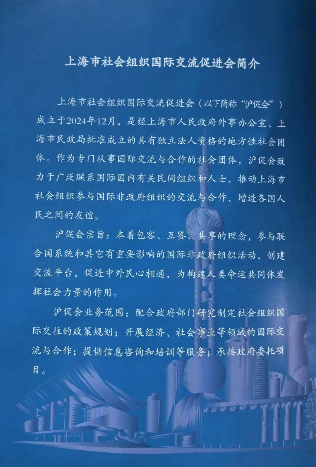 在新的一年里,沪促会将坚持服务国家总体外交和上海城市发展,围绕深化发展、提质增效目标,持续强化政治引领,深度融入高质量共建“一带一路”和“四大全球倡议”,着力打造品牌项目、拓展平台功能、优化协同机制,不断提升专业能力和传播效能,努力为上海民间外交高质量发展贡献力量。