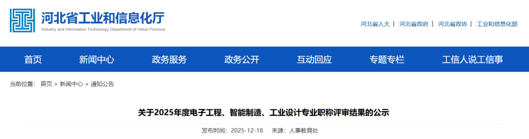 关于2025年度电子工程、智能制造、工业设计专业职称评审结果的公示