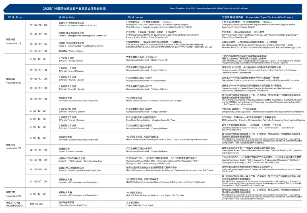 2025年11月20-22日,备受瞩目的2025广州大湾区国际轨道交通产业展览会(以下简称展览会)即将在广州中国进出口商品交易会展馆举办。
