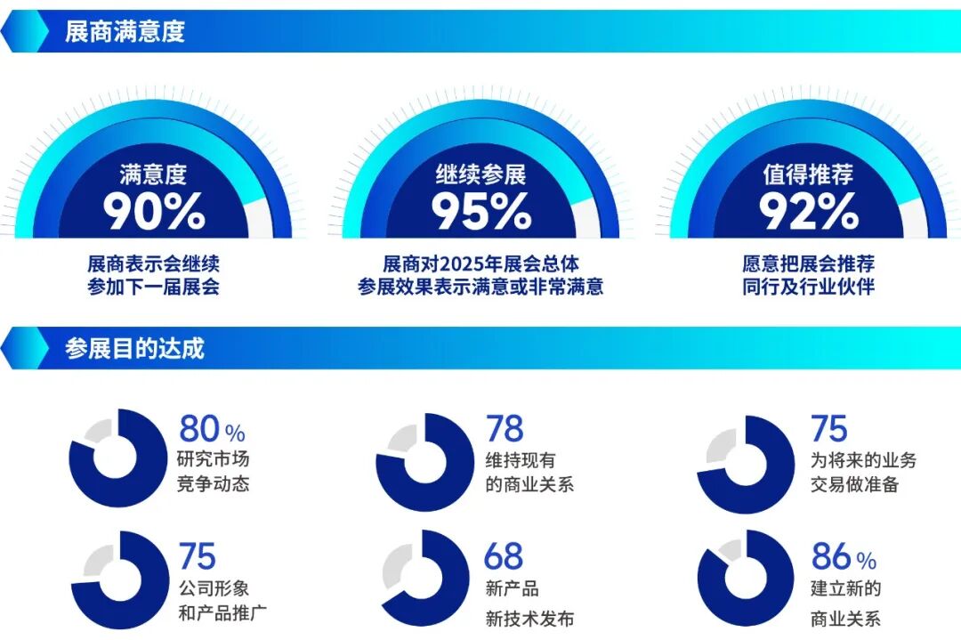 2025年展会数据提供了有力佐证:95%的展商表示将继续参展,92%的展商愿意向同行推荐;到场的65,734名专业观众中,96%对展会表示满意,且近七成为研发设计、企业管理及采购供应链等核心决策者。这充分证明了ICV CHINA作为高效商业与信息交流平台的卓越价值。