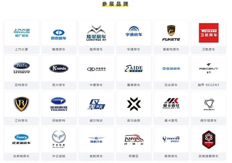 展品范围:包括C型房车、B型房车、拖挂房车、越野房车、升顶房车、进口房车等多种类型。此外,还有房车改装配件、车载电器、卫浴系统、厨房设备等房车配件,以及帐篷、睡袋、户外炊具、照明设备、储能电源等露营装备。
