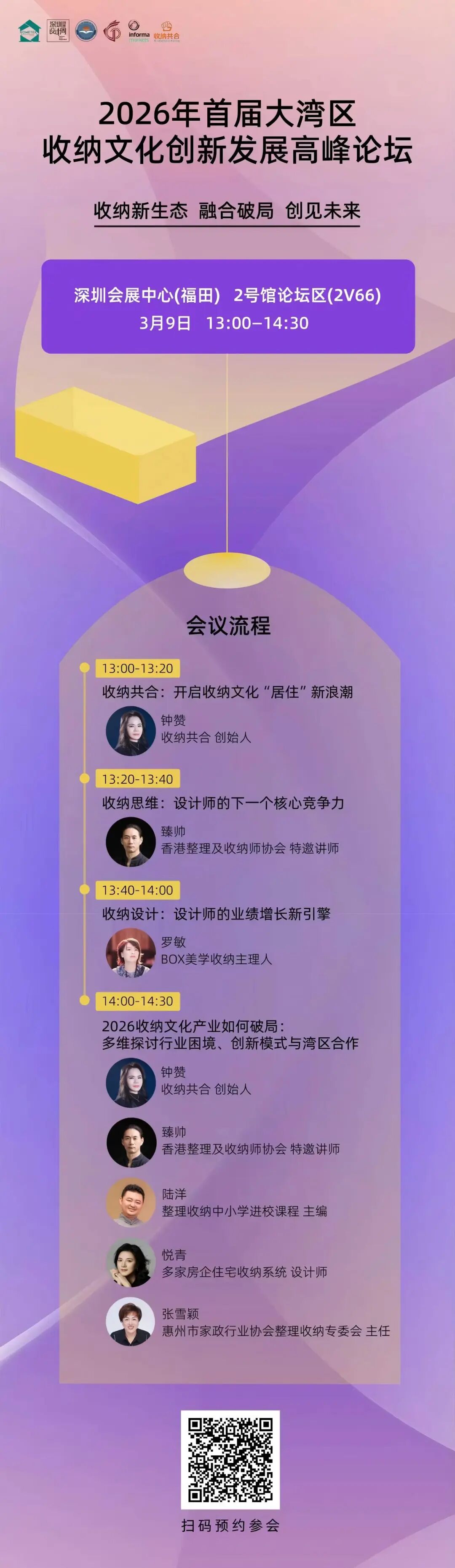 2026年,一场关乎生活美学与产业变革的思想盛宴,即将在2026家居中国(深圳)创意设计周启幕。作为国内首个聚焦“收纳文化”与“产业创新”深度融合的高端峰会,本次论坛以“收纳新生态 、融合破局、创见未来”为核心议题,旨在汇聚全球智慧,重新定义空间价值。