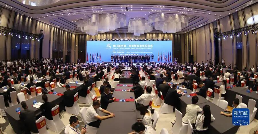 这是第18届中国—东盟博览会项目集中签约仪式现场(9月10日摄)。新华社发(广西壮族自治区投资促进局供图)