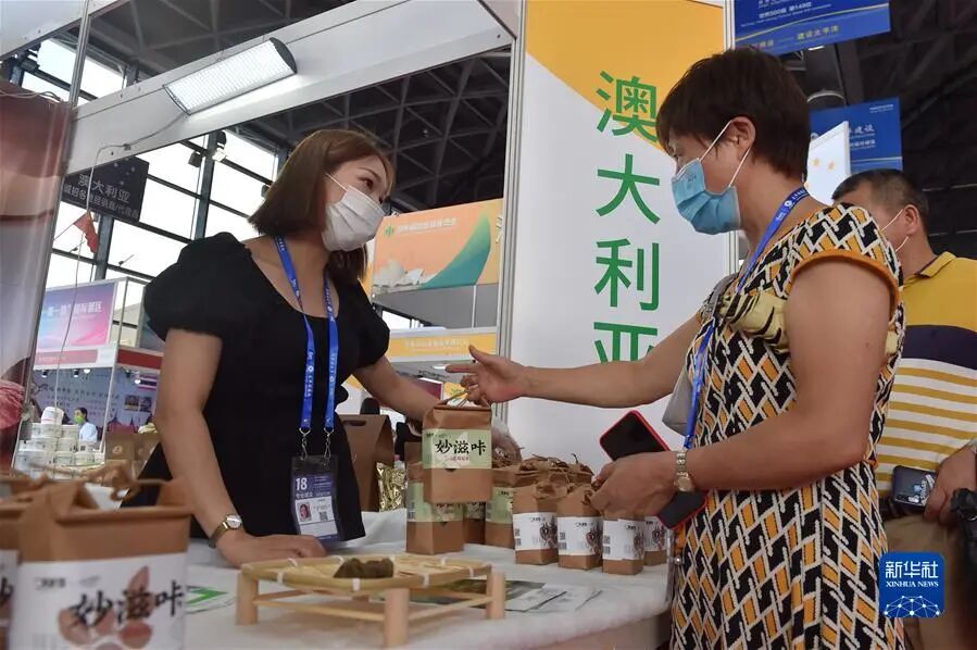 9月11日,在第18届中国—东盟博览会现场,参会者在品尝选购商品。新华社记者 陆波岸 摄