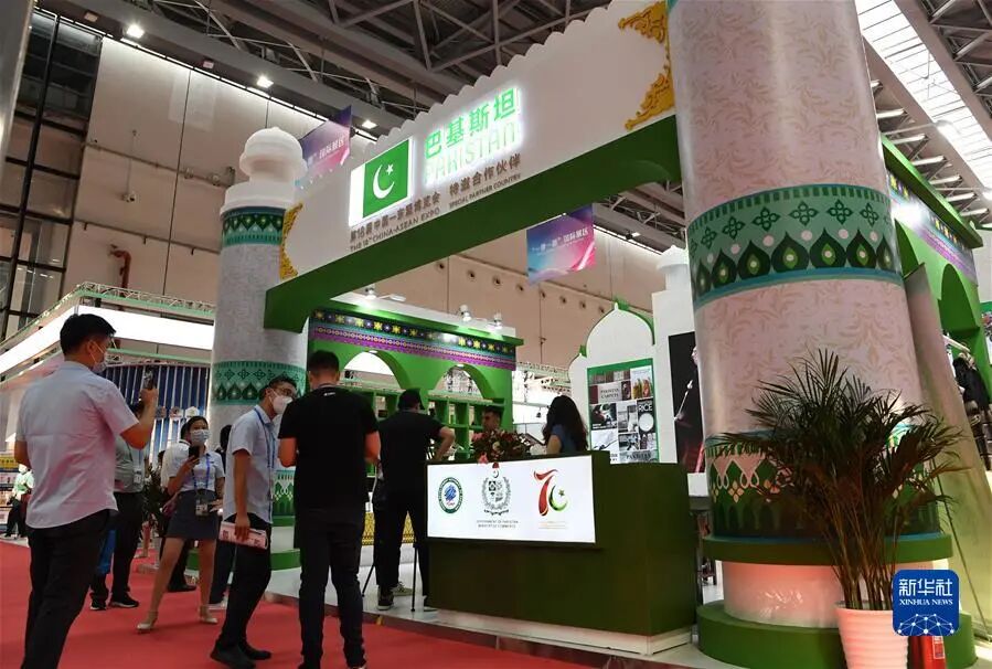 9月11日,在第18届中国—东盟博览会现场,参会者在巴基斯坦展台参观,巴基斯坦是本届博览会特邀合作伙伴。新华社记者 马宁 摄
