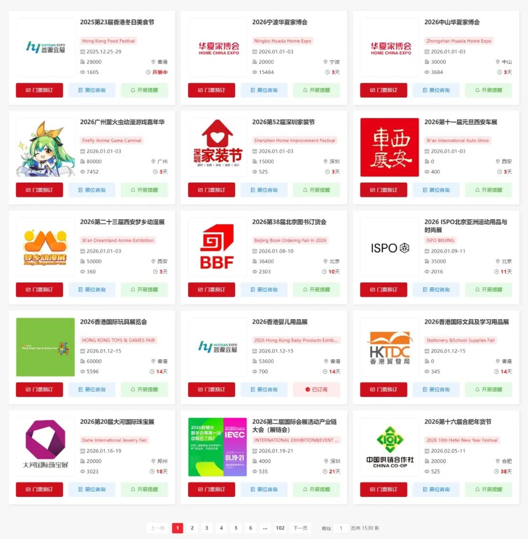 2026年5月全国将举办多场重要的展会活动,涵盖了车展、数字经济、工艺品、自行车、汽车制造技术、锻造铸造、低空经济、纺织、应急管理、宠物、跨境电商、太阳能光伏、烘焙、茶叶、矿业、工业、美容、五金、建筑工程、餐饮、食材、地坪、混凝土、建材、家居、火锅、农业、眼镜、自有品牌、矿业、粮油、劳保、泵阀、照明、加盟、食品、零售、文化、门窗、礼品、体育用品、民宿、旅游、台球展等多个领域。小编为大家整理了2026年5月全国展会排期表,希望能帮助你规划行程。末文获取5月全国展会门票预约入口~(门票限时免费)