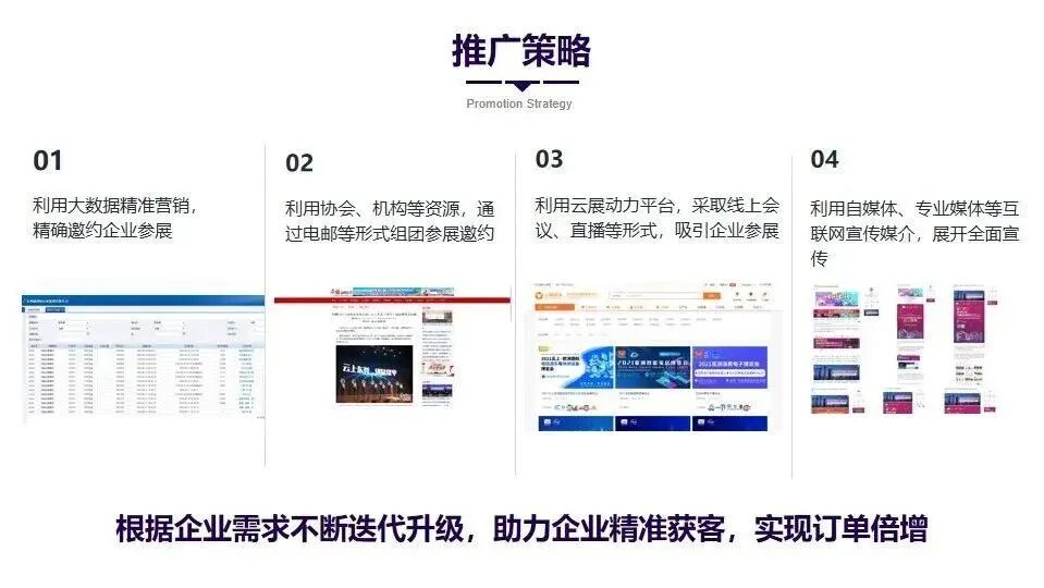 - 参与国内外同类展会及行业论坛,定向推介展会亮点