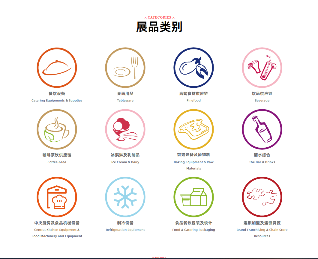 展览规模持续扩大,较往届进一步优化升级,12大展品类别覆盖酒店及餐饮供应链各环节