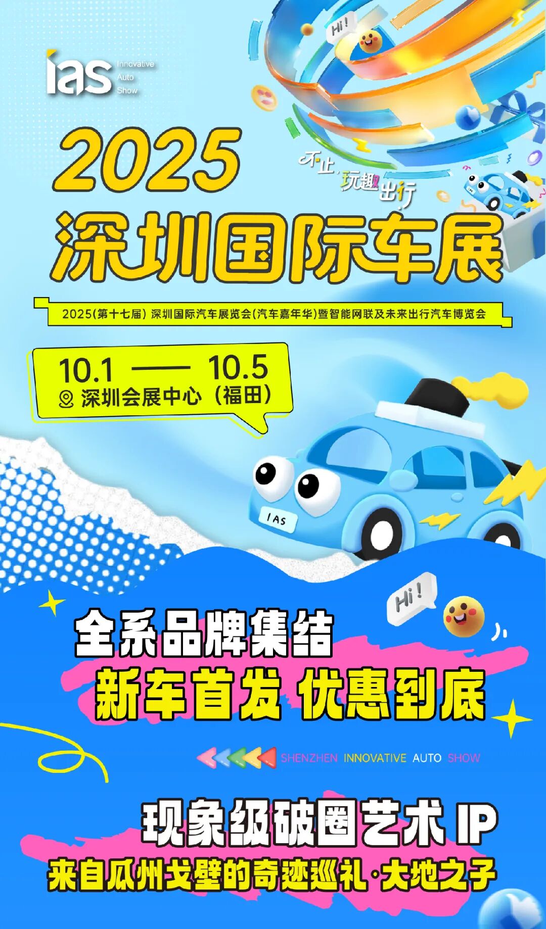 今年十一国庆假期,2025(第十七届)深圳国际汽车展览会暨智能网联及未来出行汽车博览会(简称:2025深圳国际车展)将于10月1日至5日在深圳会展中心(福田)举办。本届车展不仅是一场汽车行业的盛会,更成为推动假日经济、释放消费潜力、服务民生需求的重要平台。尤其值得关注的是,现象级大地艺术IP“大地之子”将首次走出戈壁,登陆深圳车展,以艺术赋能消费,以跨界文化多元并进,为节日期间的市民和游客带来一场融合潮流艺术与科技出行的沉浸式体验。