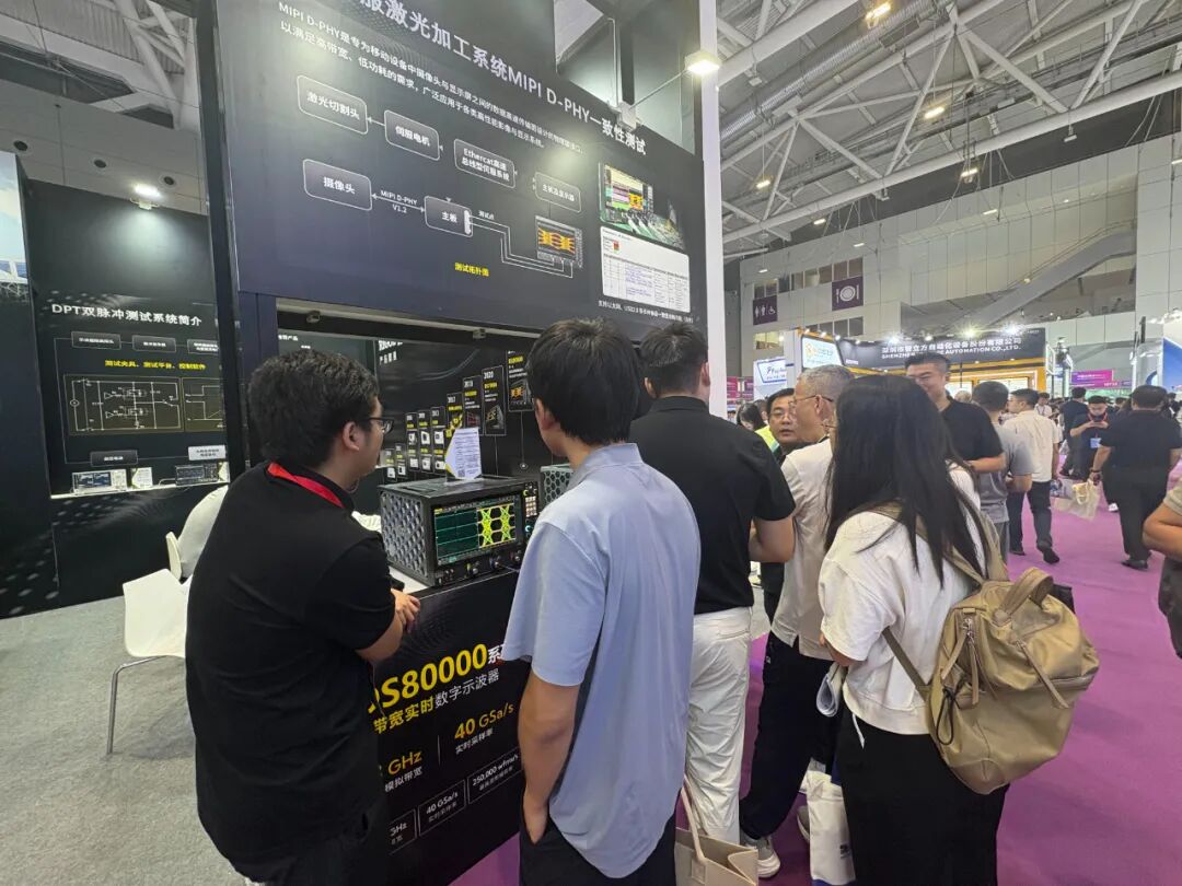 在展会期间,观众可以亲手操作示波器,在模拟真实应用环境中直观感受产品性能。无论是复杂信号的实时捕捉,还是多任务协同测试的流畅响应,都获得了在场专家和客户的高度认可,并围绕产品的具体应用展开了深入交流。