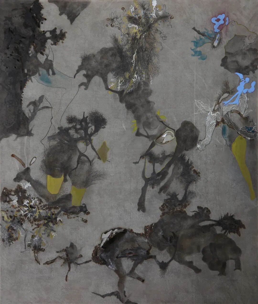 Spray paint, oil paint and Chinese ink on canvas with pencil