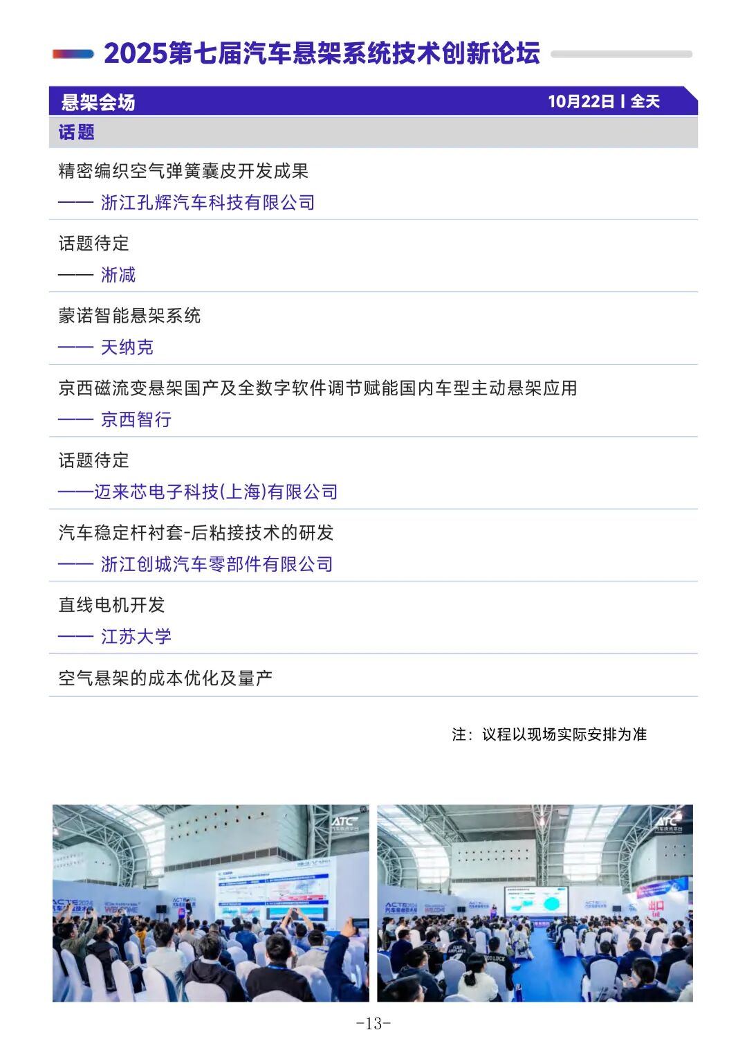 同期八大技术峰会,涵盖了汽车制动、转向、悬架、智能底盘、车辆动力学、48V 系统等多个领域。并对展会同期举办的精彩会议进行了详细介绍,包括会议的主题、时间、议程安排等信息,突出重点会议的详细议程,让观众提前知晓会议的精彩内容。