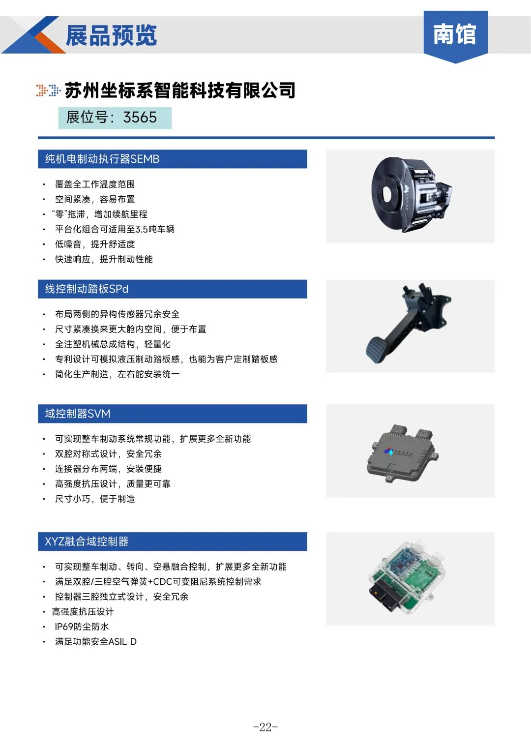 精心挑选了部分展商的亮点展品,同时特别介绍了参展的代表企业。例如,上海同驭汽车科技有限公司将展示其耦式电子液压制动系统(EHB-HD)和线控电子液压制动系统(iEHB)等前沿产品;武汉元丰汽车零部件有限公司将带来单推杆气压盘式制动器、双推杆气压盘式制动器等高性能制动产品。这些展品代表了行业的最新技术趋势,展示了展商在汽车底盘系统领域的创新实力。