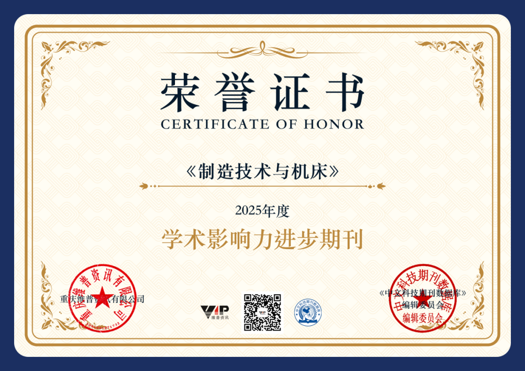 近日,通用技术机床研究院机床杂志社《制造技术与机床》被重庆维普咨询有限公司、中文科技期刊数据库编辑委员会评为“2025年度学术影响力进步期刊”。该奖项重点关注期刊学术质量与影响力的年度进步幅度,以学科排名上升程度为核心评价依据。该奖项基于维普数据库收录的7000余种来源期刊,通过对影响因子等关键指标进行学科内统计分析比较后确定。