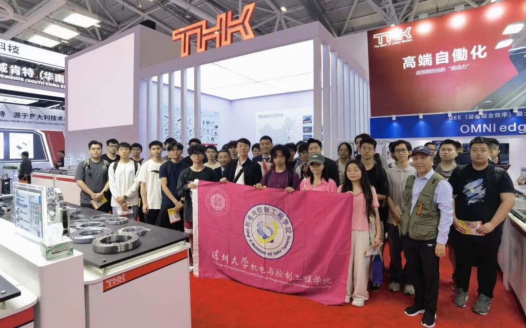 11月5日,2025 DMP 大湾区工业博览会在深圳国际会展中心隆重开幕。受蒂业技凯(中国)投资有限公司(以下简称THK)的邀请,11月6日,机电与控制工程学院荣休教授王华权带领26名同学参观了第二十六届大湾区工业博览会。