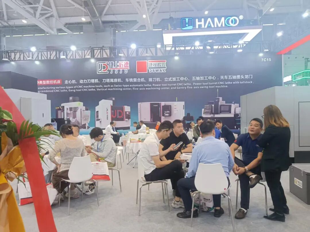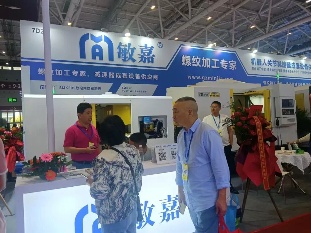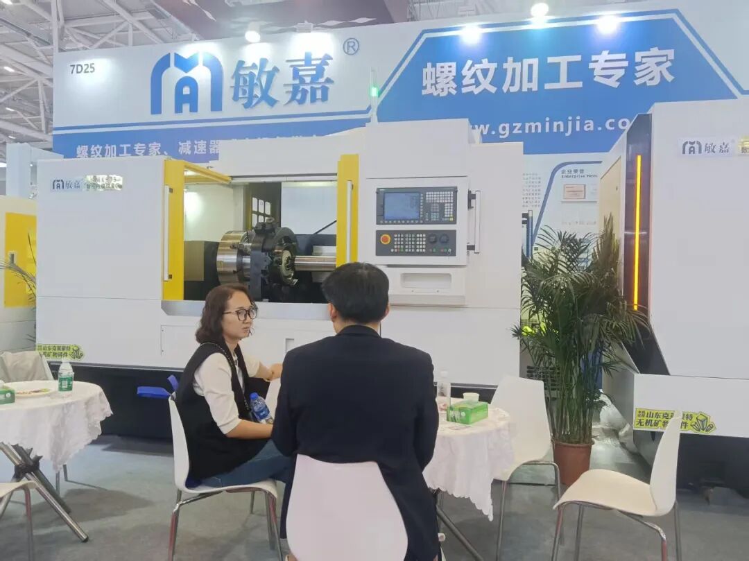 副会长单位广州敏嘉公司此次共展出四台螺纹磨床系列核心产品,李媛媛副总及曹部长等和客户在详细恰谈。