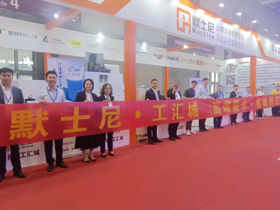 默士尼展位,汇集了11家工汇城的企业,易总在展位和合作伙伴们一起拉了个超长的横幅。