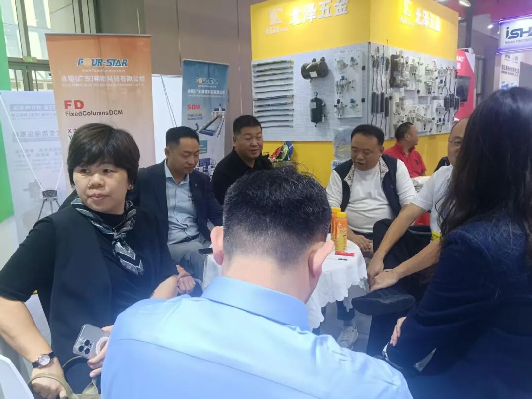 东莞金保金保电源携变压器、稳压器等全系电源产品重磅参展,更首次推出革命性油雾收集系统,以绿色智造方案解码产业升级新范式。刘总和客户在热情交谈。