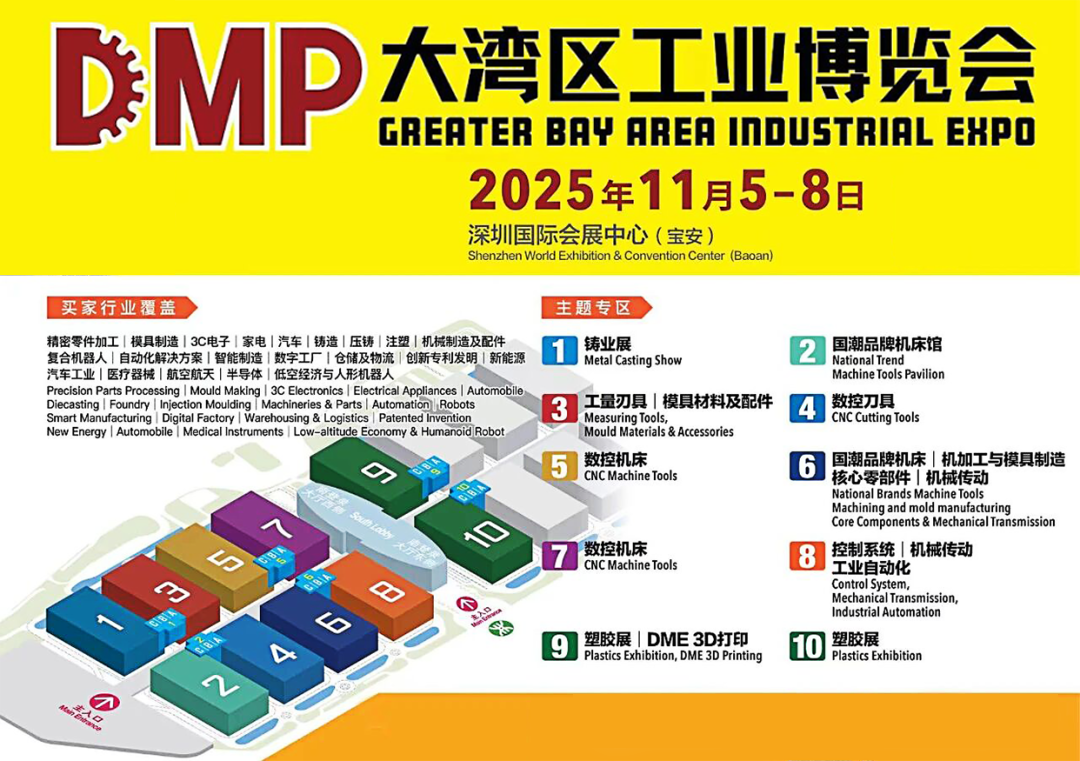 2025年DMP大湾区工业博览会(简称“DMP工博会”)将于11月5-8日在深圳国际会展中心(宝安)举办,作为华南地区最具规模与影响力的工业技术展览会之一,DMP大湾区工业博览会一直是洞察行业前沿趋势、对接尖端技术与解决方案的核心平台。