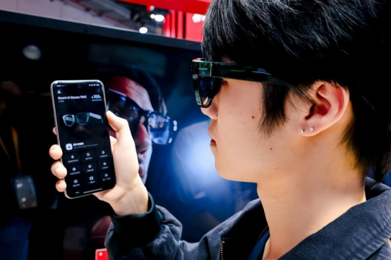 可穿戴设备黑科技:高通展台的小米、Rokid等品牌AI眼镜,支持视频通话、实时翻译、2D转3D观影等功能,通过与手机联动拓展存储与计算边界,打造“超越屏幕”的交互体验。搭载第一代骁龙XR2+平台的RokidAR设备,还能实现虚拟猛犸象与现实沙盘的互动,带来沉浸式穿越体验。