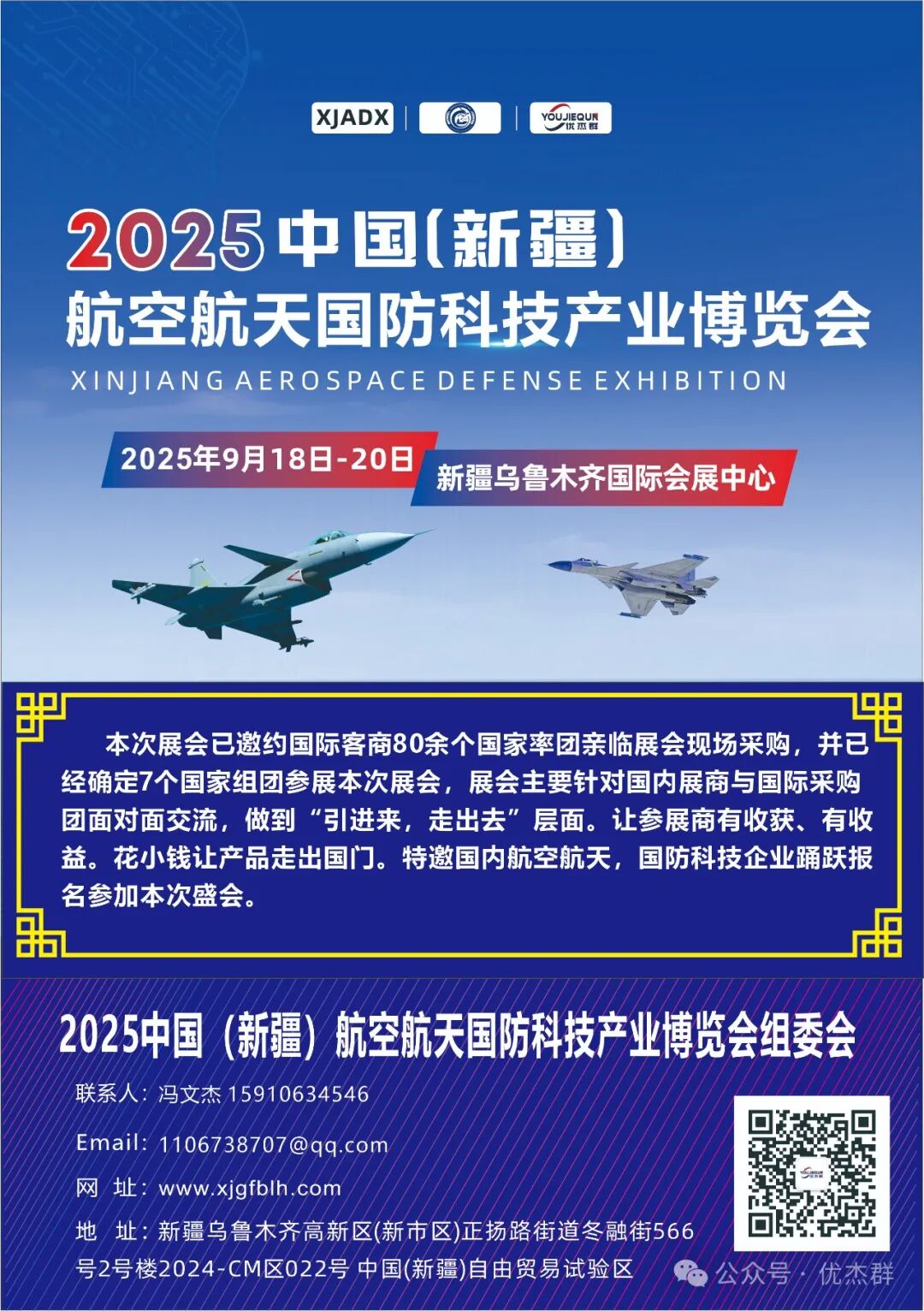 🔥🔥【2025中国(新疆)航空航天国防科技产业博览会】9月18-20日,乌鲁木齐国际会展中心!聚焦无人机、北斗导航等军民融合尖端科技,辐射“一带一路”80+国市场!600+全球展商、政府权威背书、全产业链覆盖,助您抢占中亚南亚商机!立即报名→www.xjqfbih.com #航空航天 #国防科技 #军民融合