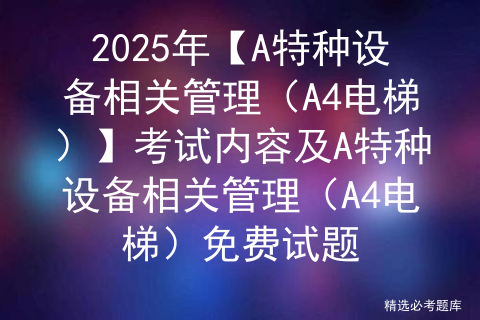 2025年A特种设备相关管理(A4电梯)考试内容为正在备考A特种设备相关管理(A4电梯)操作证的学员准备的理论考试专题,每个月更新的A特种设备相关管理(A4电梯)免费试题祝您顺利通过A特种设备相关管理(A4电梯)考试。
