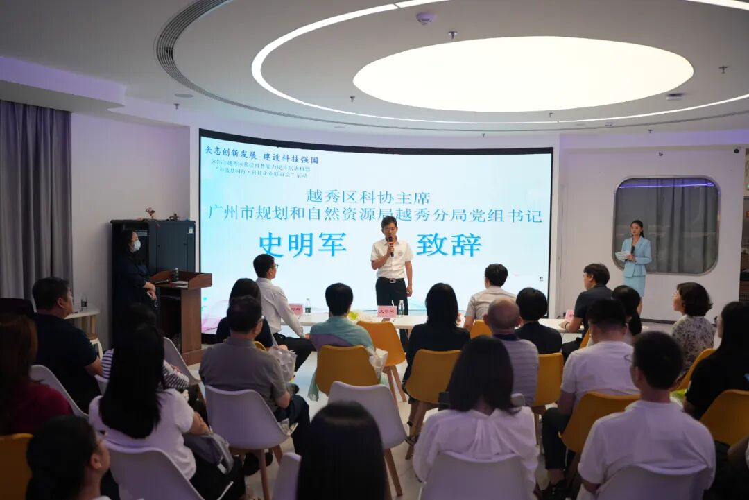 越秀区科学技术协会主席、市规划和自然资源局越秀分局党组书记史明军致辞,向全区科技工作者致以节日问候,期望通过活动提升科技工作者数字素养与创新能力。