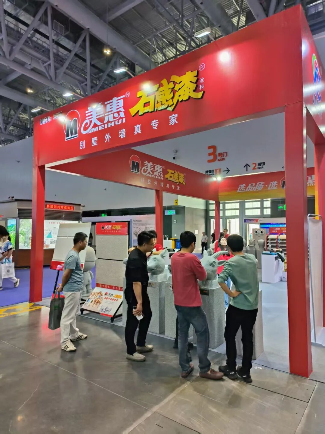 其中,惠兴涂料旗下“美惠”石感漆十二生肖展品凭借独特创意与出色质感,成为展会热门打卡点,吸引大批观众、尤其是年轻群体驻足观赏、拍照留念,现场咨询产品的客商与市民络绎不绝,收获超高人气。