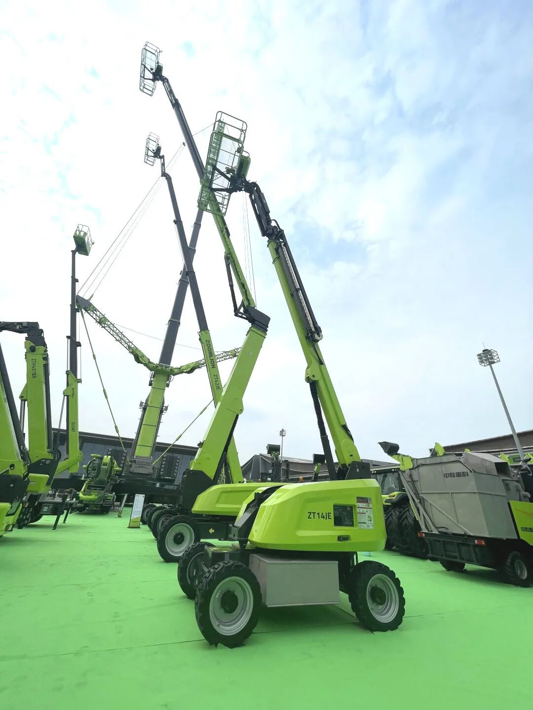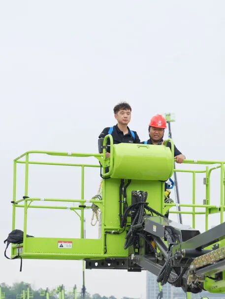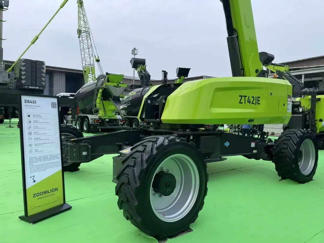 新一代14m电动直臂式高空作业平台ZT14JE成为全场焦点,其采用全交流驱动系统与紧凑型可折叠飞臂设计,转运效率提升30%,搭配免润滑轴承与两节伸缩臂结构,维护成本降低20%。优化后的锂电池组支持快充技术,续航能力较上一代提升15%,配合精准电液比例控制,动作平稳性达到行业领先水平。