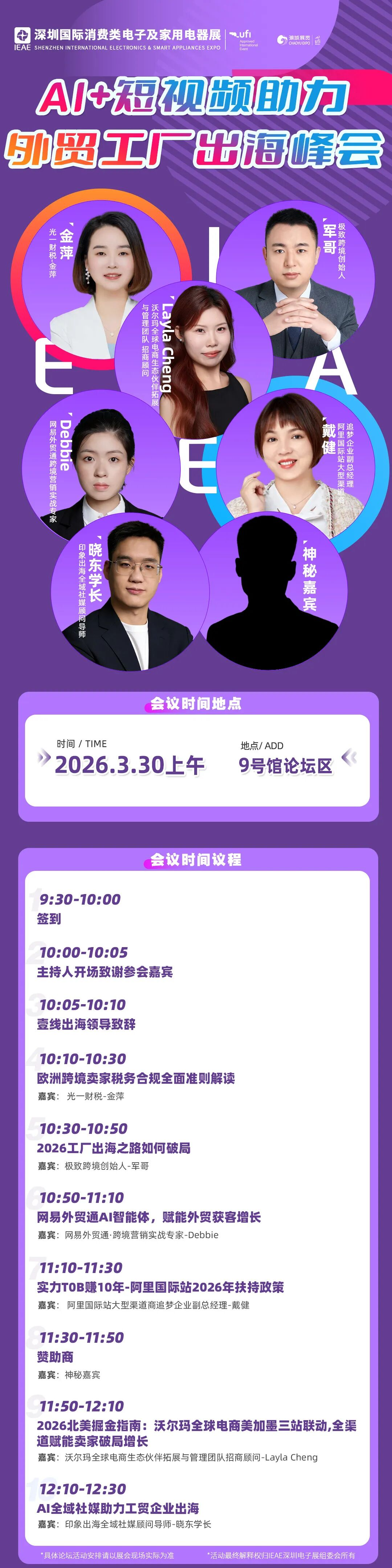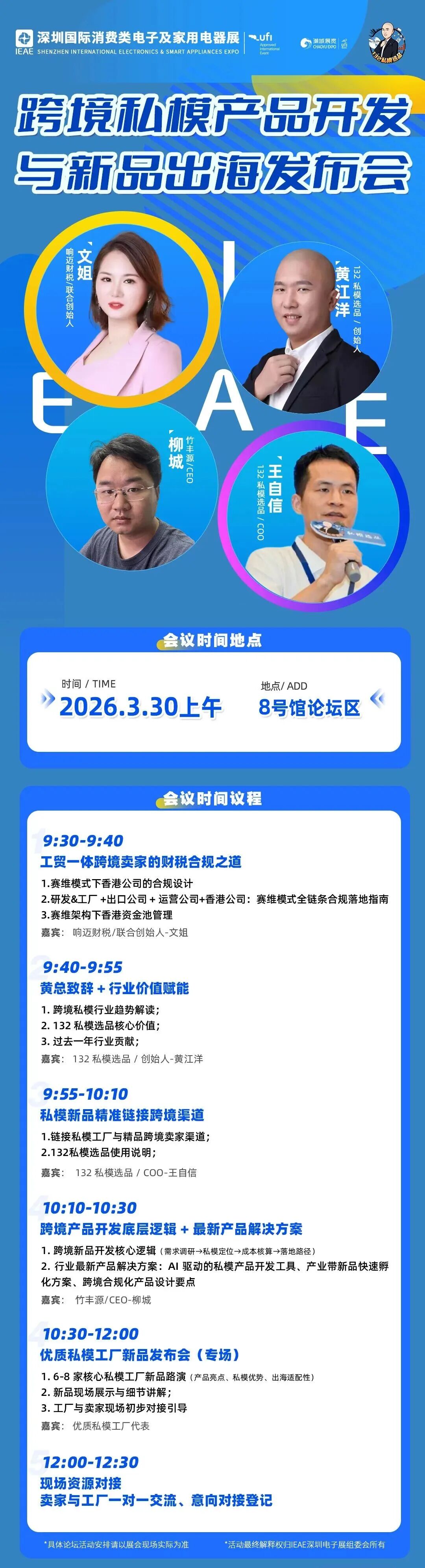 本届展会现场深度策划消费类电子、智能家电创新及跨境私模出海发布会三大核心板块,同期奉上近10场高密度主题论坛!