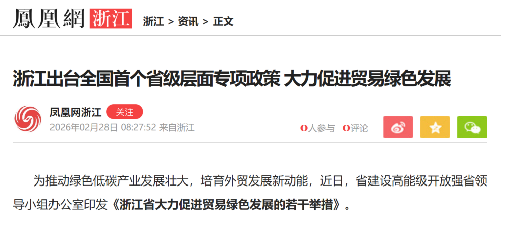 浙江发布全国首个省级绿色贸易专项《若干举措》