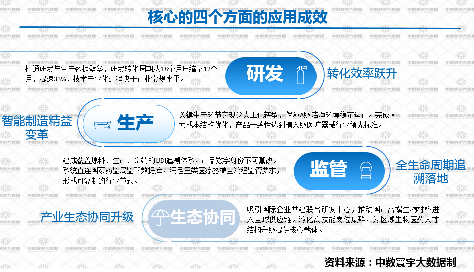 值提升落地见效该方案实现研发、生产、监管、生态协同的全方位升级,为生物医药企业数字化转型树立标杆,其核心的应用成效分为以下四个方面。