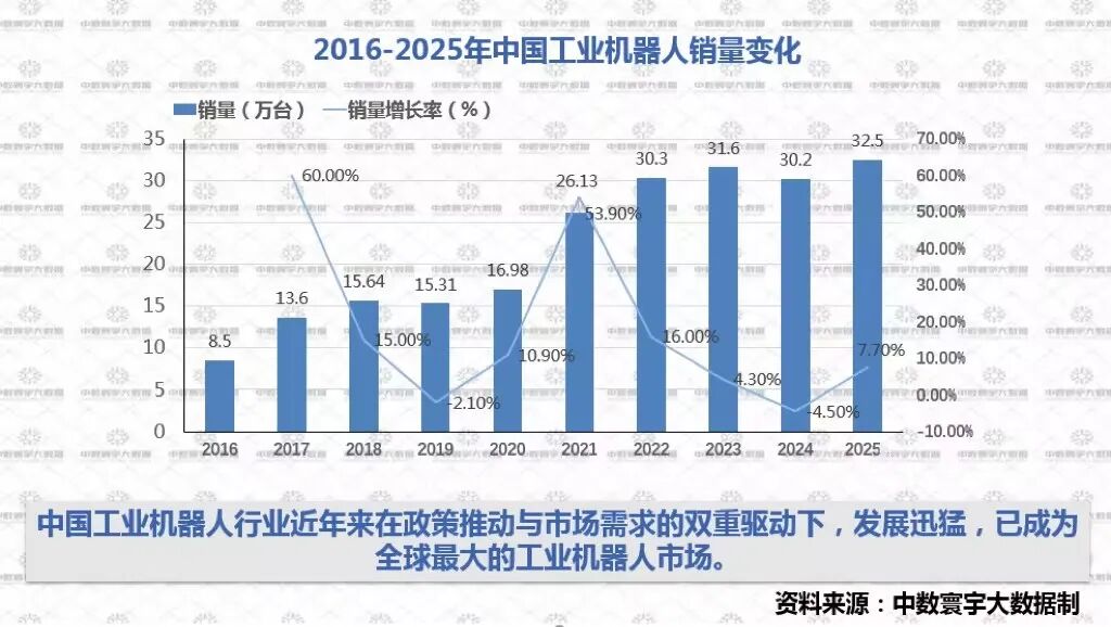 人口结构驱动转型,缓解用工压力。我国人口红利渐失,老龄化问题突出,劳动年龄人口占比持续下降,传统制造业“用工难”问题加剧,一线操作、高温高风险岗位劳动力缺口年均扩大5%以上。劳动力成本持续上升,倒逼企业通过自动化改造替代人工,工业机器人成为核心解决方案。2025年我国工业机器人产量达55.6万套,机器人密度325台/万人,远超全球平均水平,自动化替代进程持续加快。